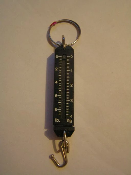 Pieni, näppärä jousivaaka kalastusliiveihin, taskuun ja pakkiin, pituus:10cm, punnitus 4kg:hen saakka.