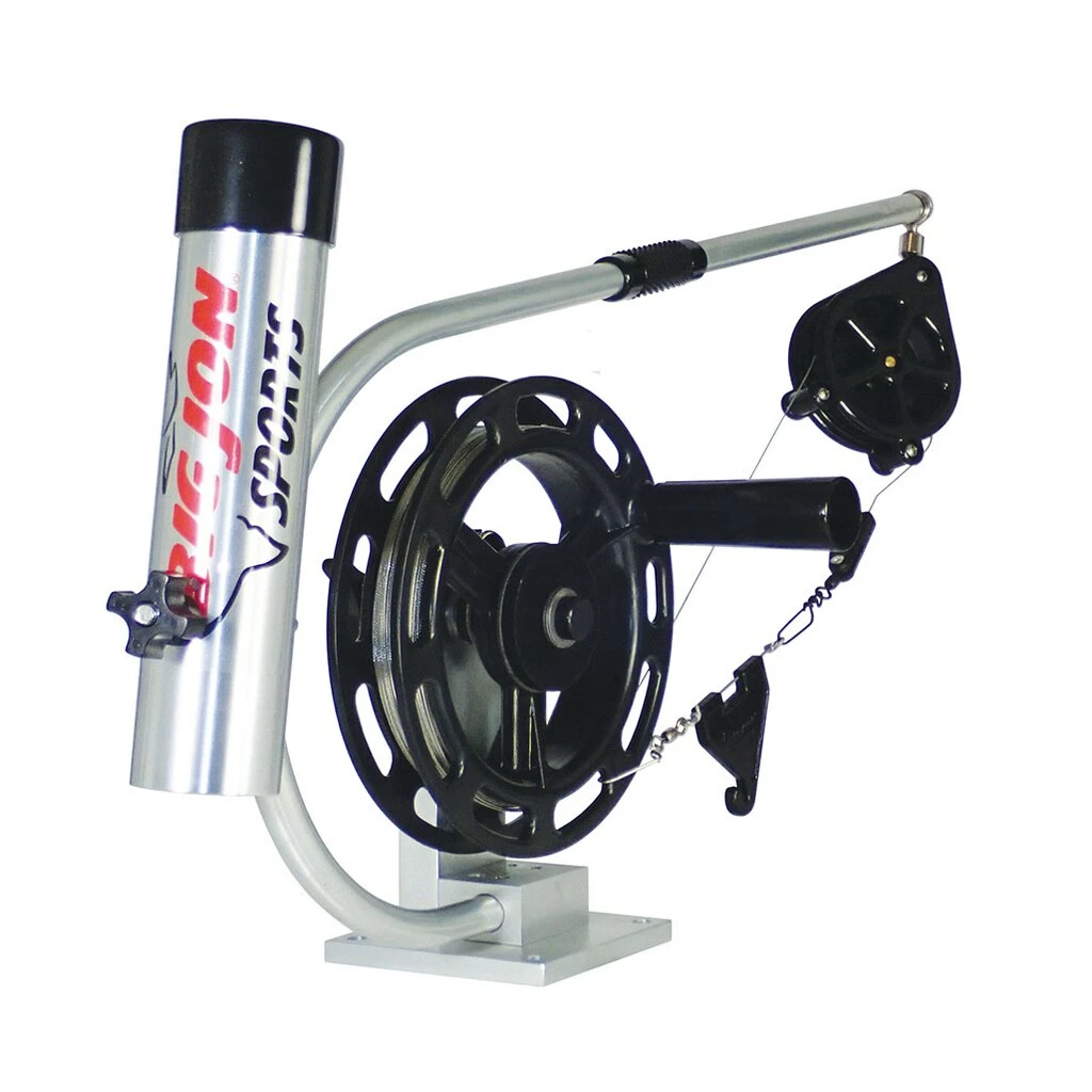 • The Big Water Manual’s 20 in. flexible boom is designed to be set straight back from the transom.