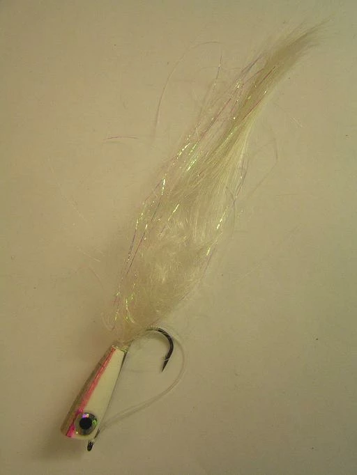 Hauki-popperi 6/0-kokoisella koukulla, koukun suojaksi ruohoontarttumista vastaan laitettu paksua siimaa.