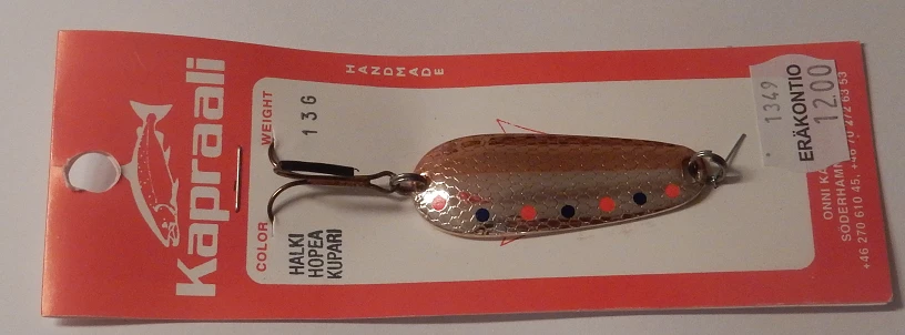 Onni Kapraalin valmistama mahtava lohi-taimen lusikka koviin koitoksiin, paino:13grammaa.