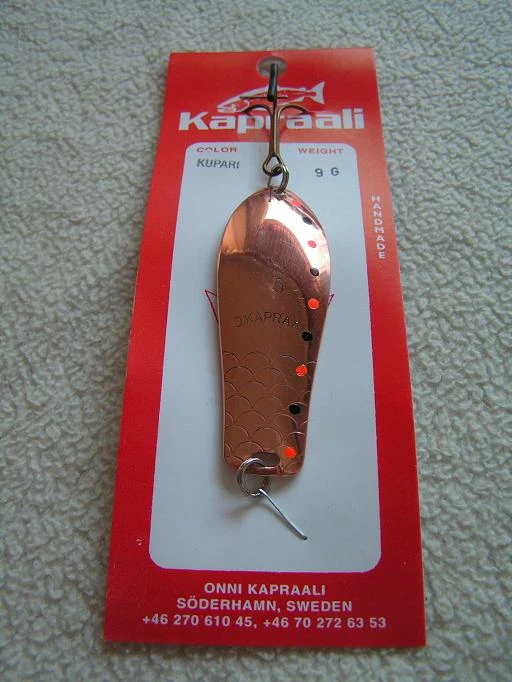 Onni Kapraalin valmistama mahtava lohi-taimen lusikka koviin koitoksiin, paino:9grammaa.
