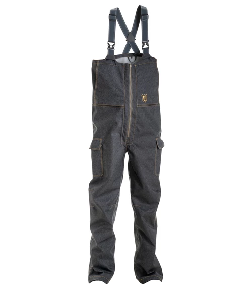 Oletko tylsistynyt näyttämään tylsältä kun menet kalaan. Hanki nämä ja kukaan ei tiedä että päälläsi on korkealaatuiset kalastushousut. Farkkukankaalta näyttävä pinta saa nämä housut näyttämään tavallisilta farkuilta ja niillä voi vaikka siirtyä suoraan after-fishing harrastuksiin. Housuissa on isot reisitaskut ja käsienlämmitystaskut rintakehän päällä. Lahkeet ovat helposti kiristettävissä pikalukituksella vaikkapa saappaan päälle. Kolmikerroksinen kangas on vedenpitävää ja hengittävää. Säädettävillä henkseleillä ja vyöllä housut saa sopimaan täydellisesti. Housujen leikkaus on lähellä normaalien vaatteiden leikkausta, mutta huosujen alle mahtuu kuitenkin tarvittaessa lämpökerroksia.
